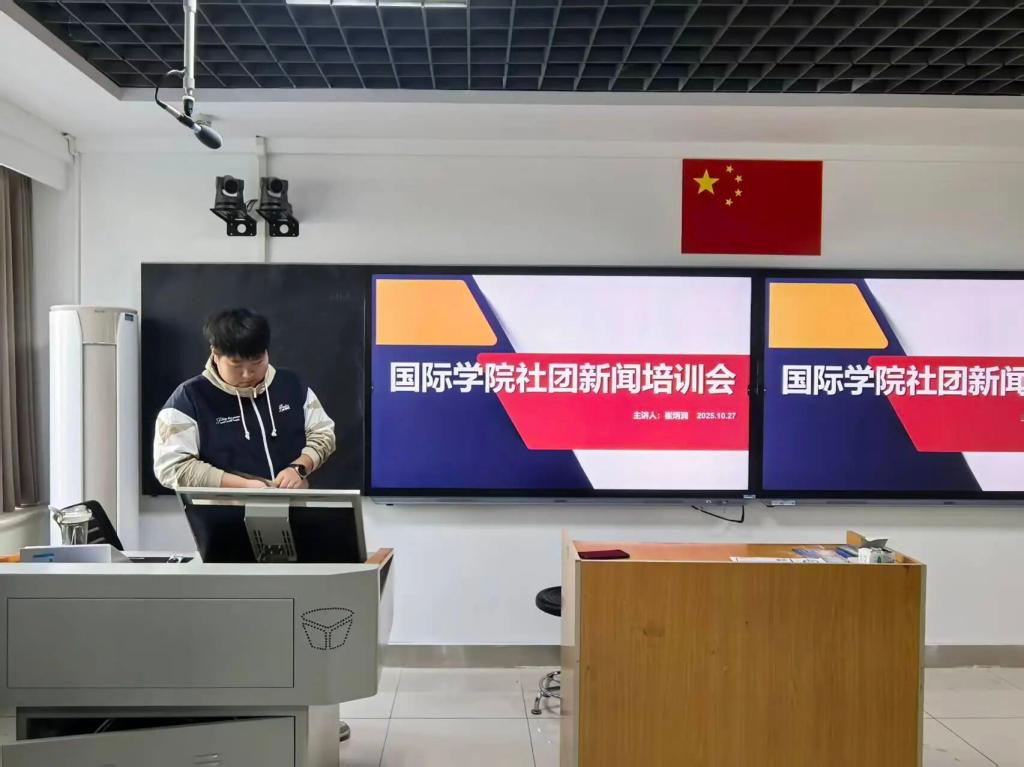 培训伊始,崔炳润以“新闻稿的核心价值与传播意义”为切入点,结合国际学院社团活动多元化的特点,强调了优质新闻稿对塑造社团形象、扩大活动影响力的重要作用。随后,崔炳润围绕新闻稿的基本结构、格式规范、语言风格等核心内容展开讲解,通过“理论+案例”的方式,拆解标题拟定、导语撰写、主体展开、结尾升华的技巧,重点分析了活动类、表彰类、合作类等不同类型新闻稿的写作要点。最后,在案例分析环节,新闻部部长刘博韬选取了学院社团过往的优秀新闻稿与常见问题稿件进行对比,直观展示了逻辑清晰、重点突出、语言精炼的写作标准,针对稿件中存在的格式不规范、内容空洞、缺乏细节等问题提出具体修改建议。