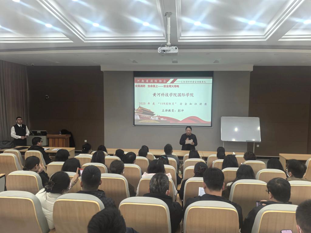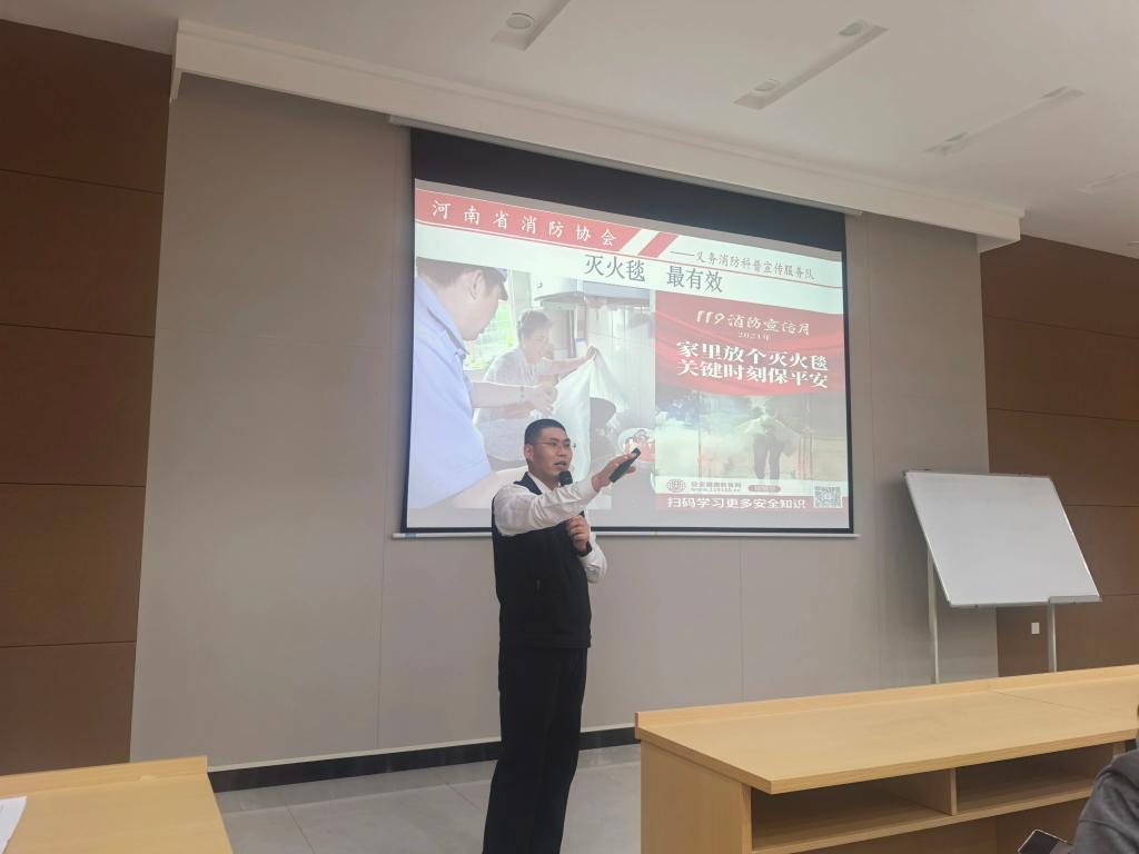 为进一步提升教职工消防安全意识与应急处置能力。11月17日下午,国际学院举办教师专场消防知识讲座,院长助理张欣欣和全体教工参加讲座,由校保卫处消防科科长杨洋、河南省消防协会教员彭冲担任主讲嘉宾。