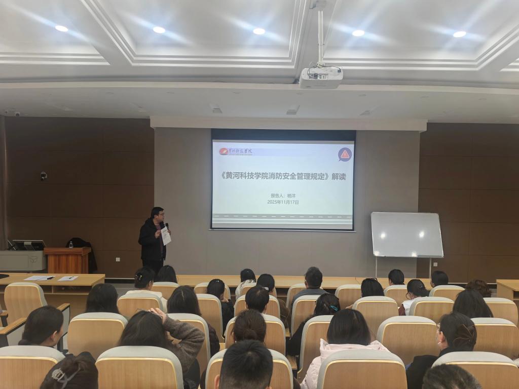 随后,杨洋围绕《黄河科技学院消防安全管理规定》展开讲解,对校园消防设施管理、日常隐患排查等内容进行了细致说明,帮助教职工明晰校园消防管理的具体要求。