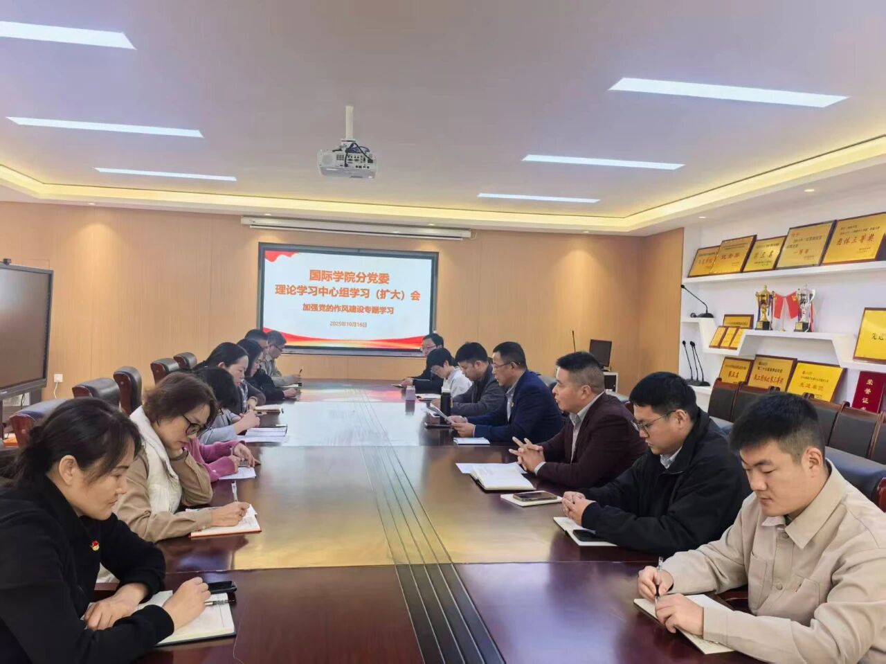 16日上午,国际学院分党委召开理论中心组学习扩大会,围绕党的作风建设进行专题学习与深入研讨。分党委委员、各党支部书记及没课党员教工参加学习。会议由分党委委员罗红磊主持。