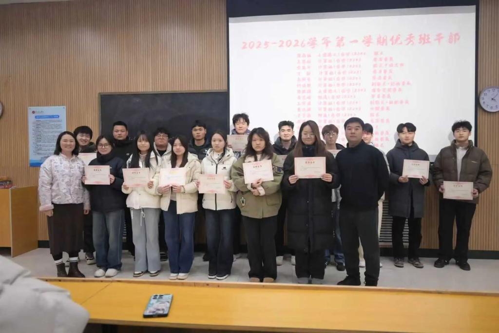 为全面回顾学年成果、表彰先进典型、明确期末与假期要求。近日,国际学院24级计网建筑物流专业2025-2026年度总结大会在国际学院阶梯二教室顺利召开。本次大会由班导师李阳、辅导员彭莹主持,全体同学参会。