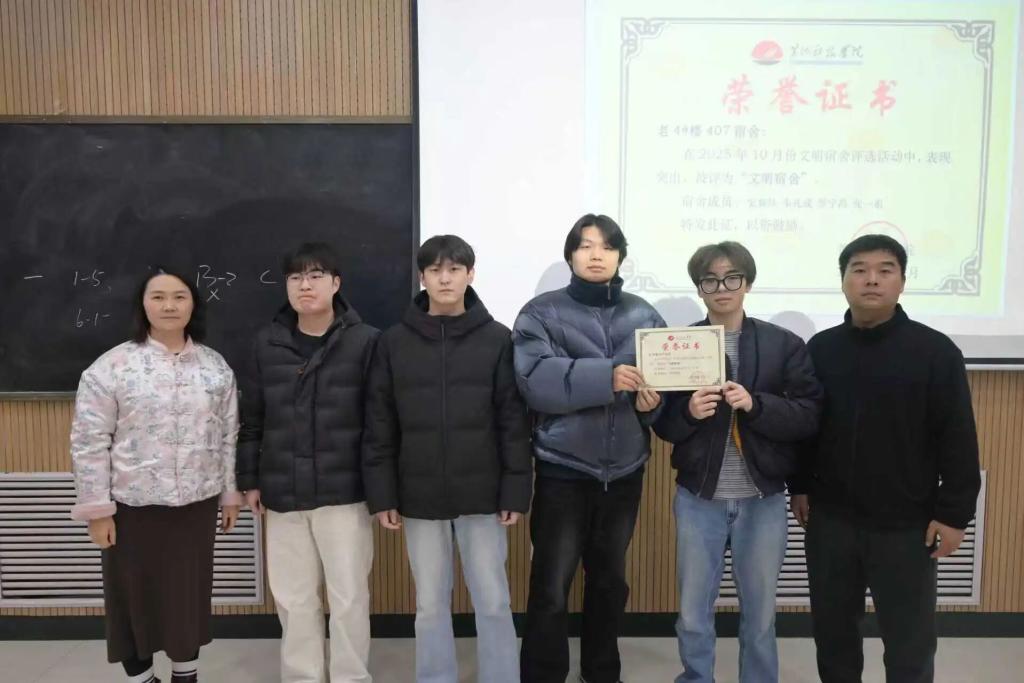 随后进入荣誉表彰环节,气氛热烈而庄重。辅导员彭莹逐一宣读“三好学生”“优秀班干部”“计算机竞赛获奖名单”“校级荣誉获得者”及“文明宿舍”表彰决定。获奖同学与宿舍代表依次上台,从彭老师手中接过荣誉证书与奖品,台下响起阵阵掌声,既是对先进者的祝贺,也凝聚起全体同学见贤思齐的奋进力量。同时彭莹老师也为所有的同学准备了抽奖的小惊喜,每一位同学都有。此次表彰不仅是对获奖集体与个人的肯定,更树立了学习标杆,激发了专业学子争先创优的热情。
