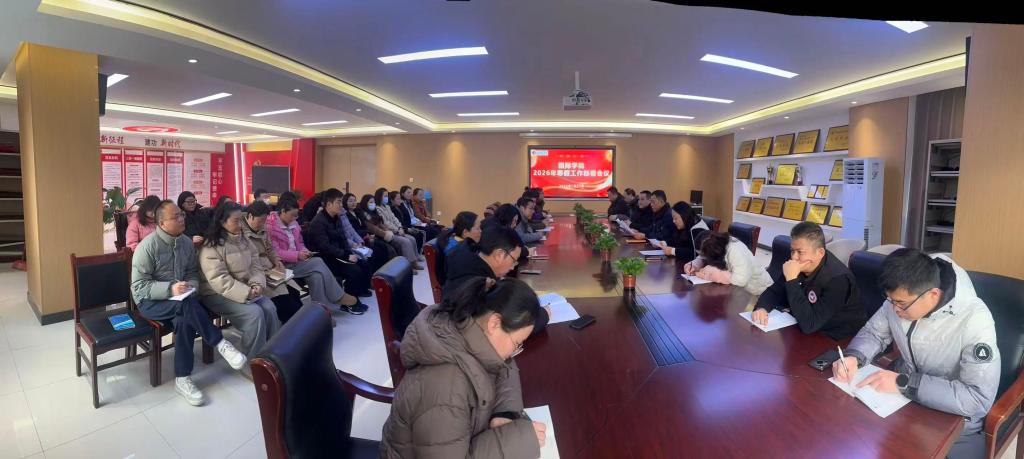 24日上午,国际学院召开全体教职工大会,专题部署2026年寒假工作。学院分党委书记刘景涛、院长助理张欣欣和全体教职工参加本次会议,会议由张欣欣主持。