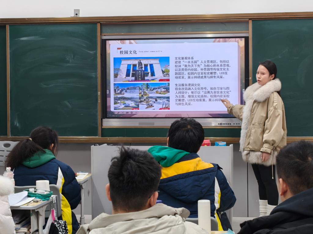 随后,王钰涵走进高中班级,面对朝气蓬勃的学弟学妹们,分享了自己的成长经历与备考心得,提供了具体可操作的实用建议。除了学业上的指导,王钰涵更注重精神层面的激励与引领。她分享了自己从高中到大学在心态、能力上的成长蜕变,鼓励信心不足的同学正视挑战、勇于突破,告诉大家每一份坚持都不会被辜负,引导学弟学妹们树立积极乐观的价值观,理性看待学业压力与成长中的得与失。