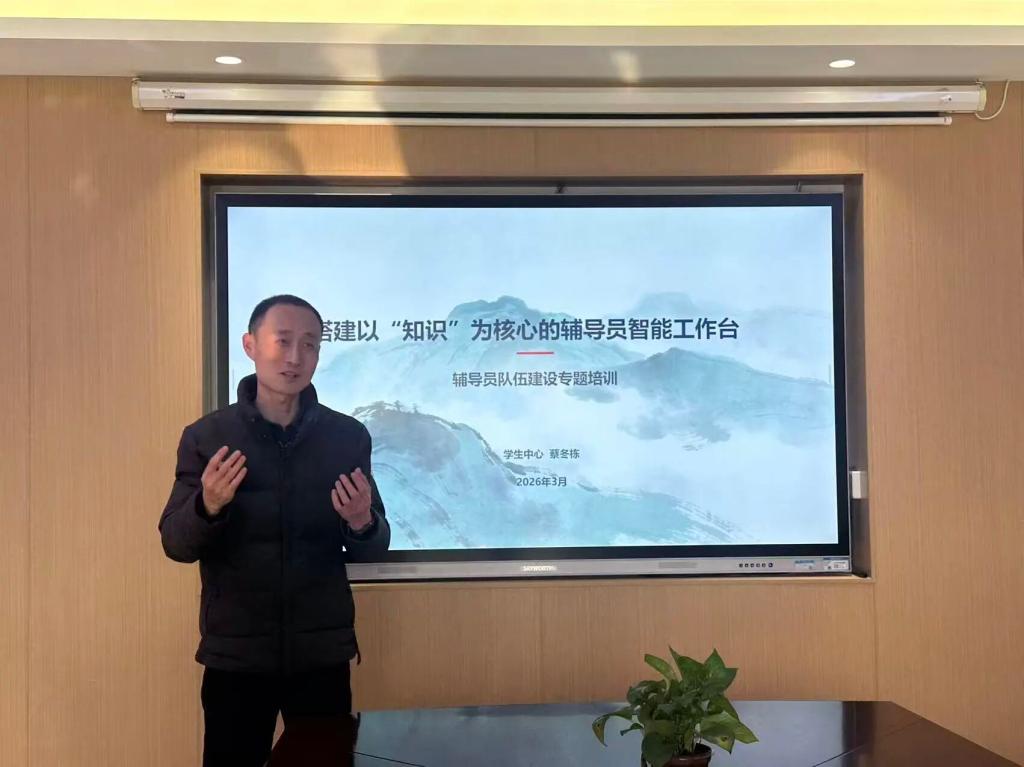 为破解辅导员工作瓶颈、提升育人效能,19日上午,国际学院开展辅导员智能工作台专题培训,全体辅导员及班导师参加,由学生中心老师蔡冬栋主讲。