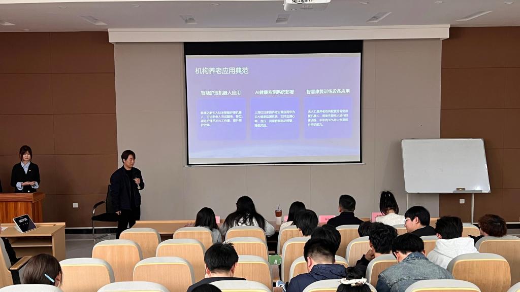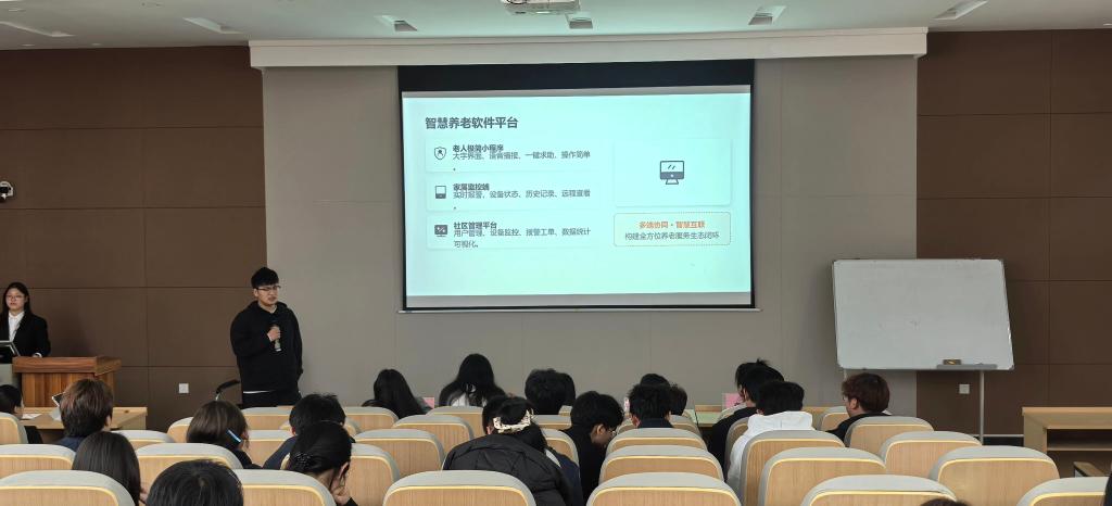 第一组团队带来“御香手作”项目,巧妙融合传统手工技艺与现代创意设计,深挖传统文化内涵,以创新形式赋予传统手艺新生命力,彰显青年学子的文化传承意识与创新巧思;第二组团队携科创项目精彩亮相,立足专业所学,以新颖独特的创意视角探索多元创新路径,充分展现了青年学子敢想敢创的风采;第三组团队带来“韧性城市之燃气安全监测”项目,聚焦城市公共安全核心问题,依托专业技术打造精准监测体系,为城市安全运行筑牢坚实防线,实用性与前瞻性兼具,赢得现场阵阵掌声。第四组团队带来“智农云眼:精准农业监控系统”项目,紧跟乡村振兴与智慧农业发展浪潮,将物联网、大数据等前沿技术与农业生产深度融合,实现农业生产精准监测、智能管控,以科技赋能现代农业高质量发展,展现了青年学子助力乡村产业升级的科创担当;第五组团队围绕“智能养老科技创新与未来发展”展开答辩,深度剖析当下养老行业发展现状与痛点,结合科技发展趋势探索智能养老产业新模式、新方向,项目兼具现实针对性与未来发展视野,获得评委与在场同学一致认可;第六组团队聚焦银发群体健康安全需求,带来“AI老年跌倒预警与智能照护系统”项目,依托人工智能技术打造高效预警与智能照护体系,以科技温情守护老年人日常生活,尽显人文关怀与科技温度。